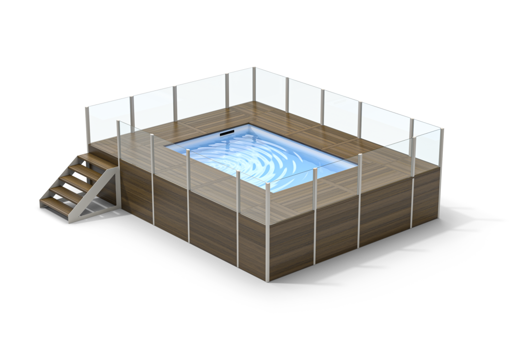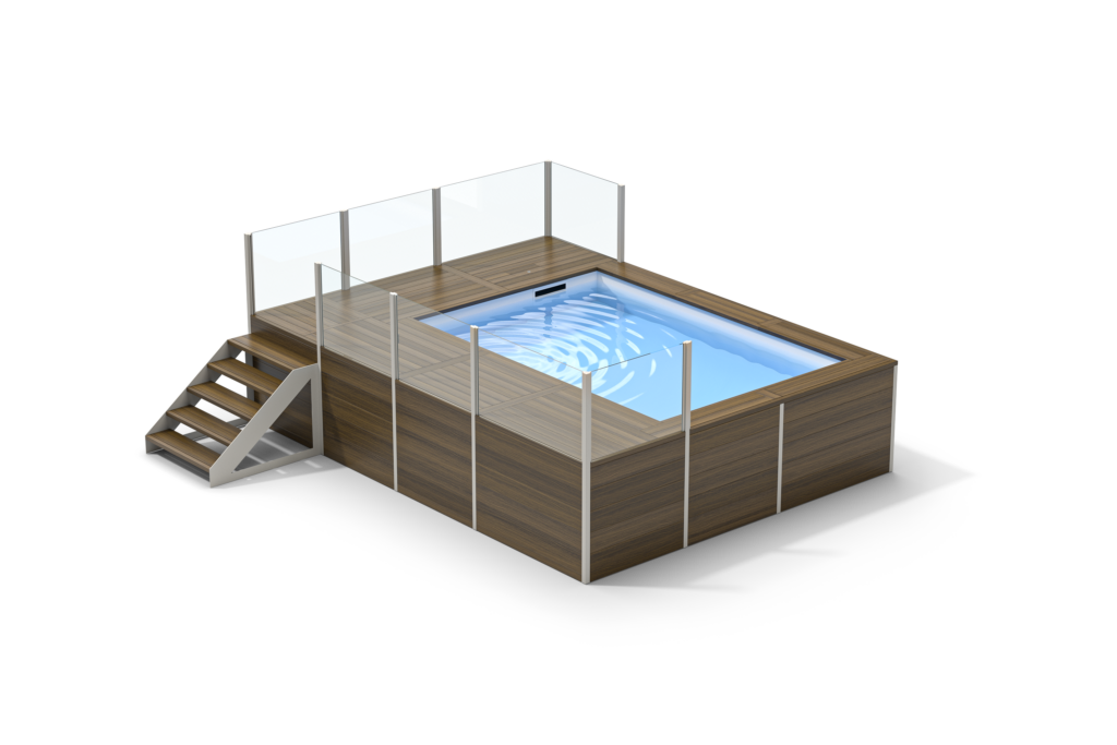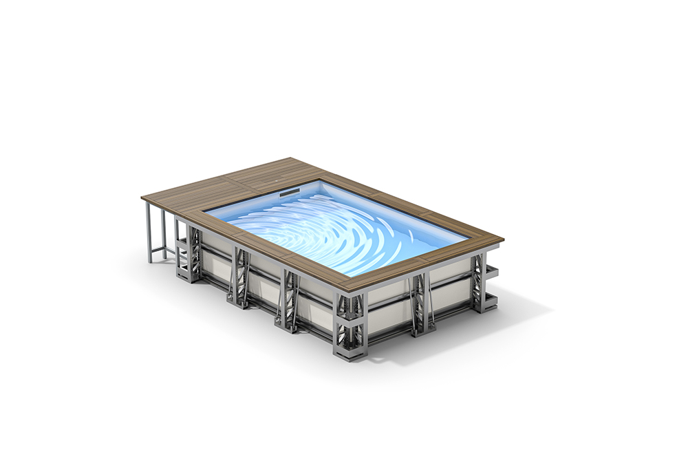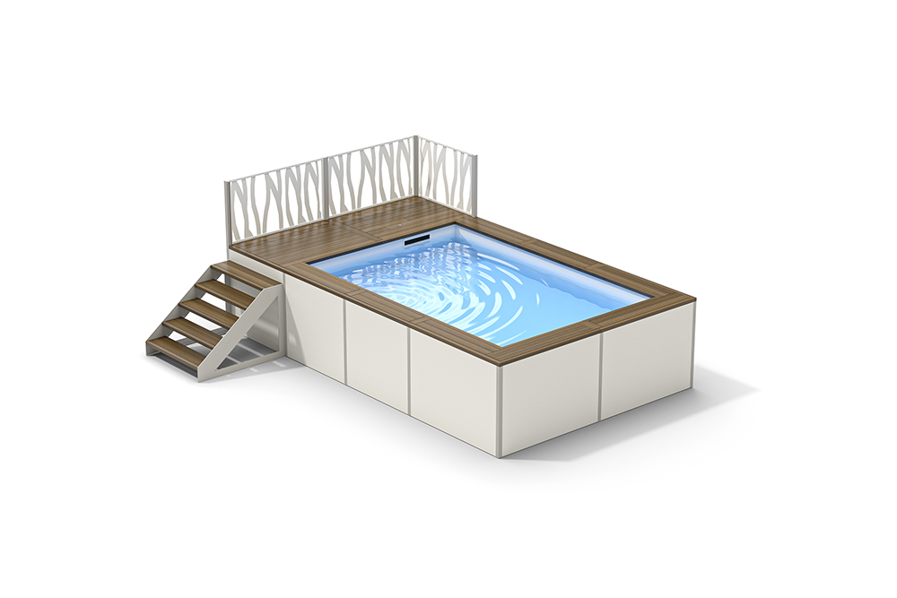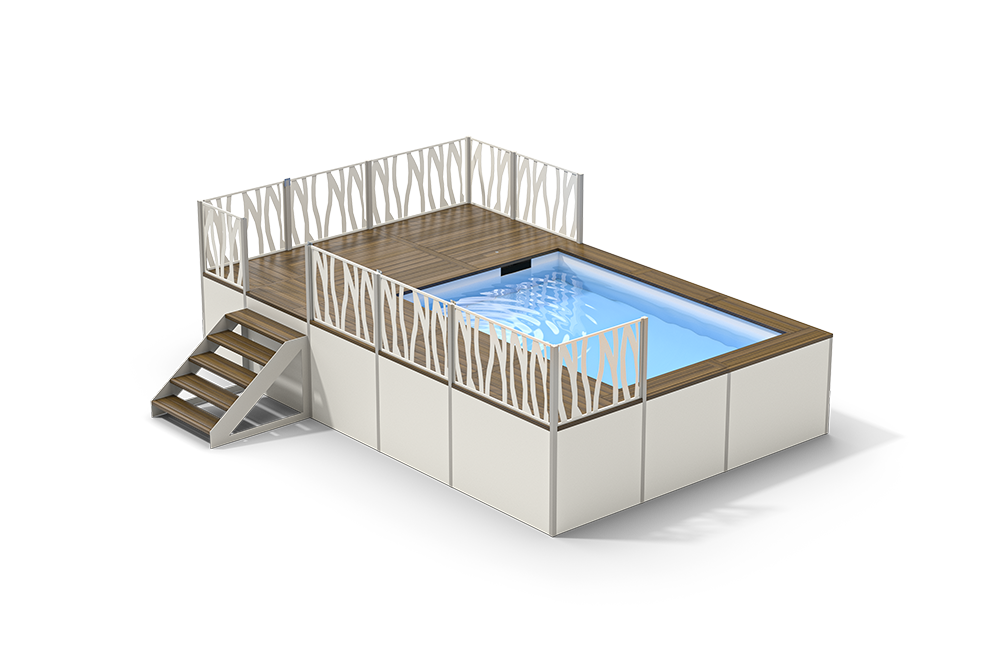 Realizzata in acciaio come la struttura portante verniciata colore RAL 7044 e gradini in iDekcing dando cosi uniformi- tà alla tua piscina
